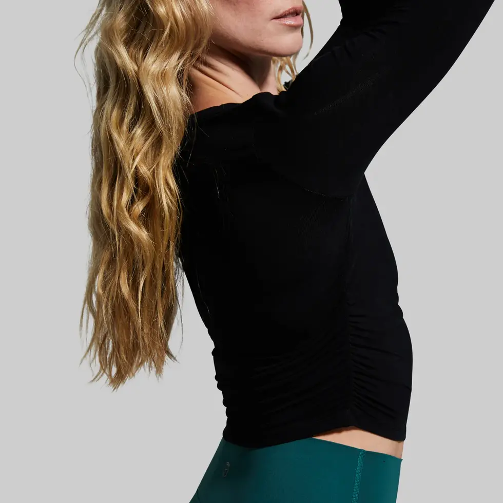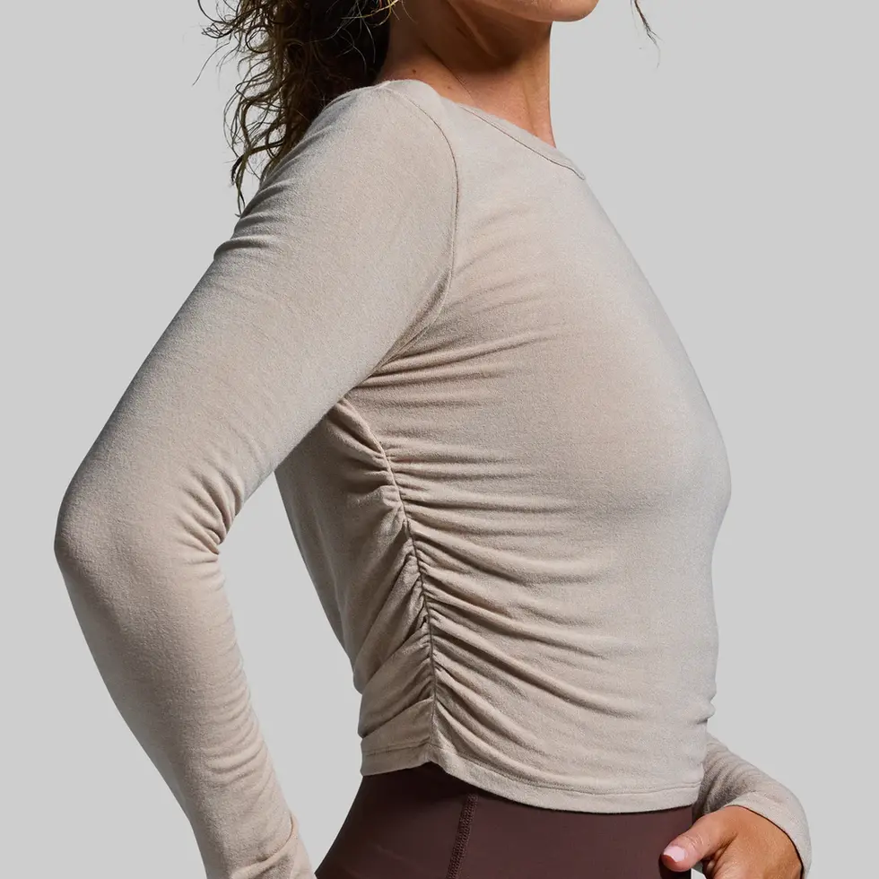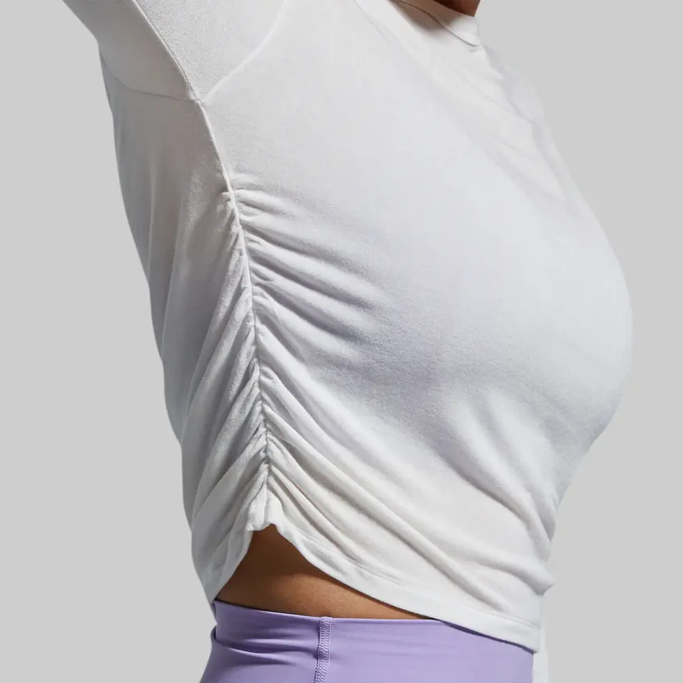 Gone are the days of wearing thick long sleeves that leave you working up a sweat before your workout even begins. Thanks to the breathable fabric, our Look At Me Long Sleeve keeps you cool and comfortable no matter how demanding the WOD. Plus, with flattering ruched sides and laidback styling, it seamlessly doubles as an everyday shirt for casual outings.